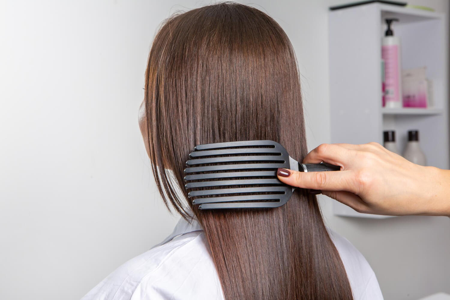 1. Специалист подбирает дозировку кератинового состава исходя из типа и состояния волос. Правильная дозировка обеспечит видимый и долговременный эффект;